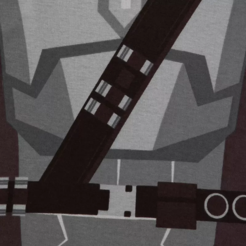 Their dream will be well protected when wearing this all-cotton Star Wars pyjamas set featuring long sleeve top and matching pants with allover Mandalorian costume print.