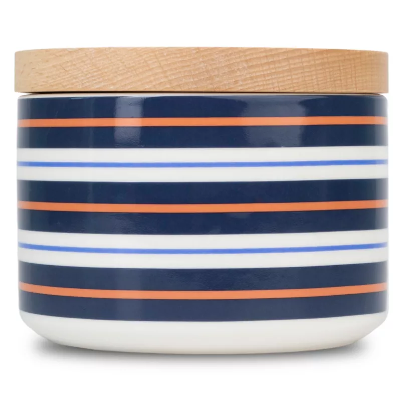 More used to melting your heart, this collection of Disney critters are featured on the lid of this candle. Meeko, Pluto and Thumper are among those on the beech wood lid which sits atop the striped ceramic container for the soy wax candle.