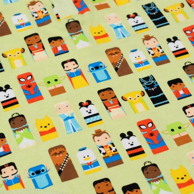 A colourful collection of characters from the worlds of Disney, Pixar, Marvel and Star Wars are united on this baby bodysuit created as part of the Disney100 celebration. All-over print features stylized screen art renditions of such characters as Stitch, Chewbacca, Snow White, Elsa and Spider-Man.