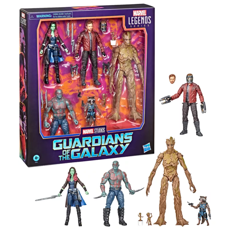 - Action figures included are: Gamora, Star-Lord, Rocket, Groot and Drax
