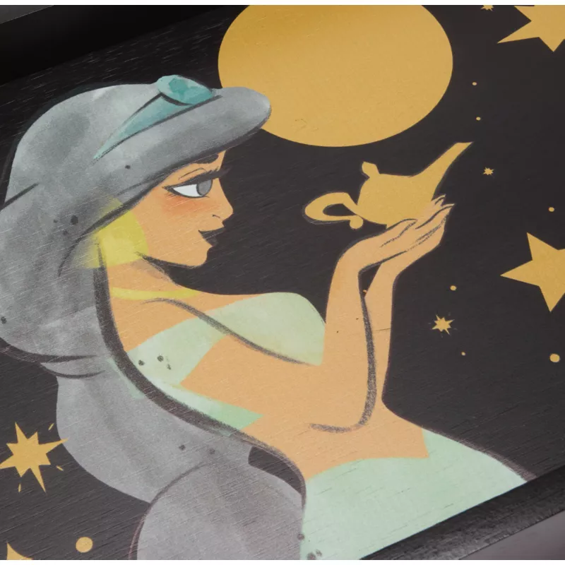 Give the gift of a little royal me time with this elegant Jasmine bath gift set. The four-piece set includes everything they need to set the stage for luxury including a bamboo bath tray, washcloth, trinket tray, and glass. Inspired by Disney’s Aladdin, the design features the lovely Jasmine and shimmery gold icons.