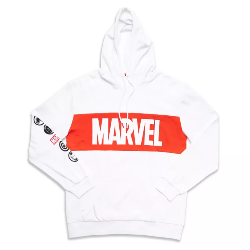 Make a statement and make it bold with this Marvel logo hoodie. Featuring the iconic Marvel logo front and centre, but with subtle character icon details on the sleeve, it’s a fun addition to every fan’s wardrobe.