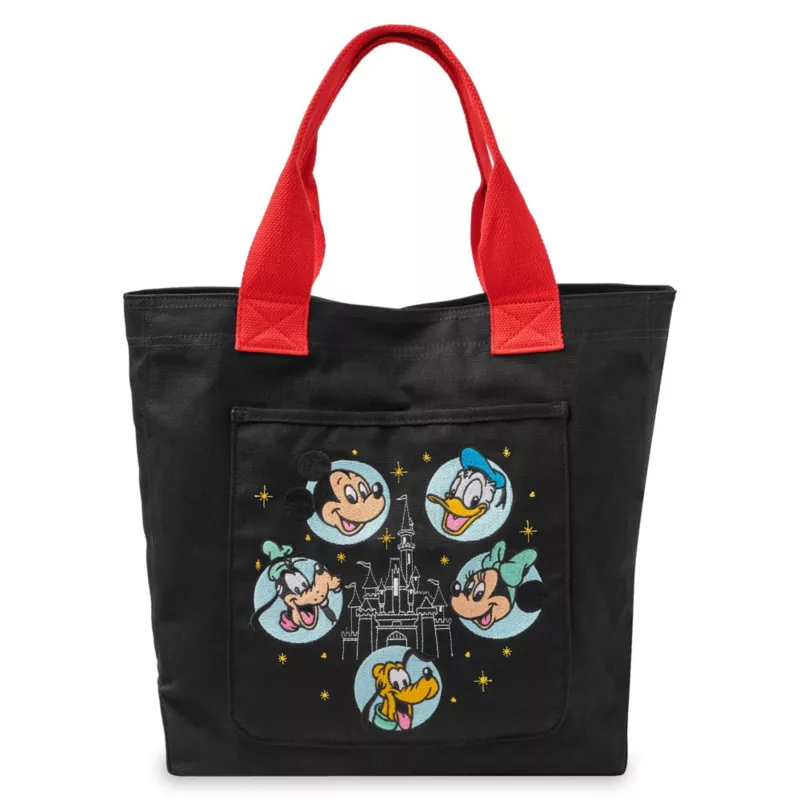 Carry around happy thoughts of the Disney Parks while in the company of Mickey and his friends with this fun tote. Minnie, Goofy, Donald and Pluto join Mickey in the embroidered design on the front of this study cotton canvas bag that includes the Fantasyland Castle.