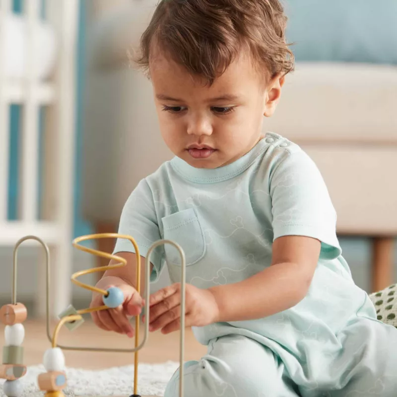 Your little one will be covered in little Mickeys with this coordinated gift set for Baby. The short sleeve bodysuit and blanket feature an allover print of wavy lines hung with Mickey icons while the final part of the three-piece set is a matching beanie with Mickey ears!
