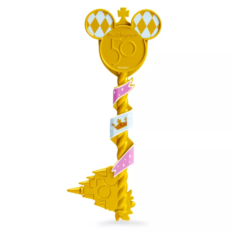 Step onto the carrousel you’re in for a royal ride with this charming Mickey Mouse The Main Attraction Opening Ceremony Key! Celebrating the 50th Anniversary of The Prince Charming Regal Carrousel, the key captures the fantasy of the Magic Kingdom Park attraction. It features a figural Disney Parks logo key head, moulded ’50’ wording and artwork of a royal steed from the ride itself.
