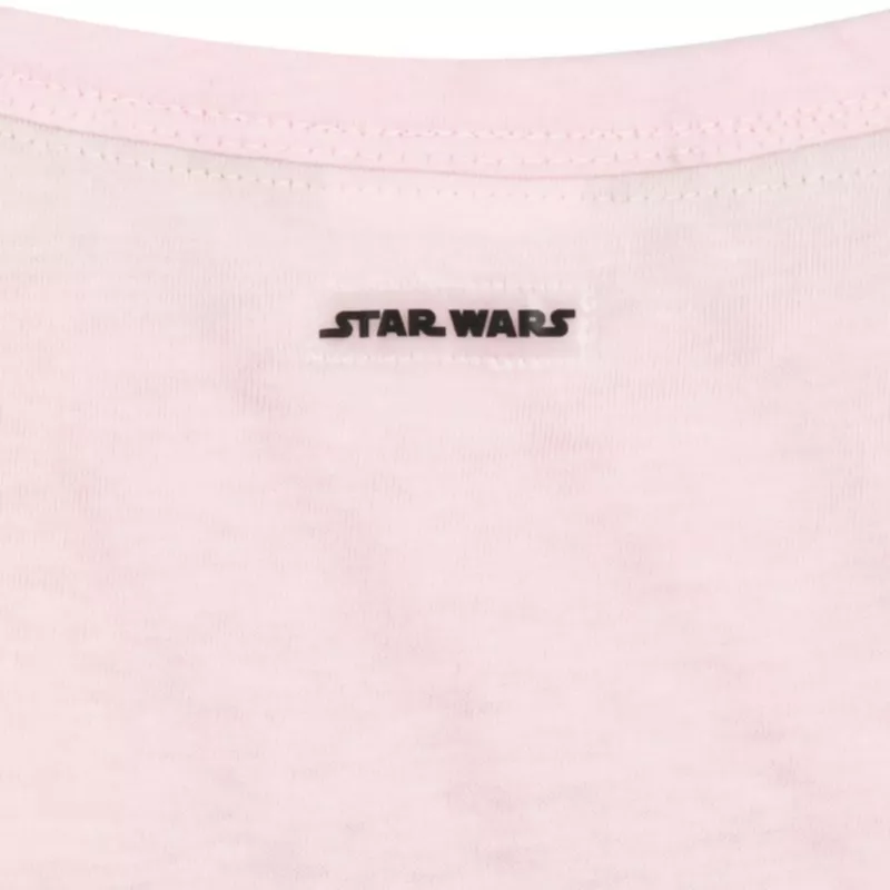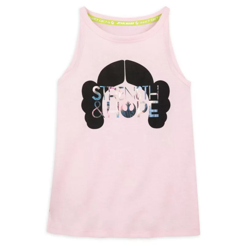 Pop Princess Leia Organa is depicted through her iconic ”buns” hairdo on this soft tank tee with minimalist art and metallic Rebel Alliance Starbird insignia, plus Star Wars logo.