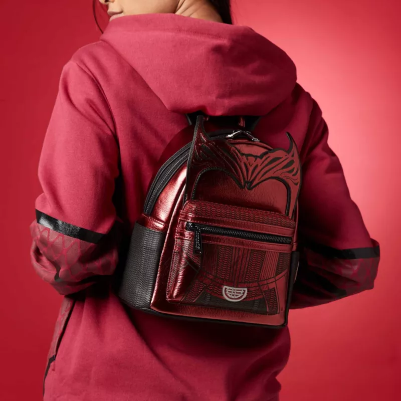 You won’t require Wanda Maximoff’s telekinetic abilities to move objects around when you can move them around in this Scarlet Witch backpack from Loungefly. The metallic simulated leather design is inspired by the Avenger’s costume, notably her distinctive pointed headpiece.
