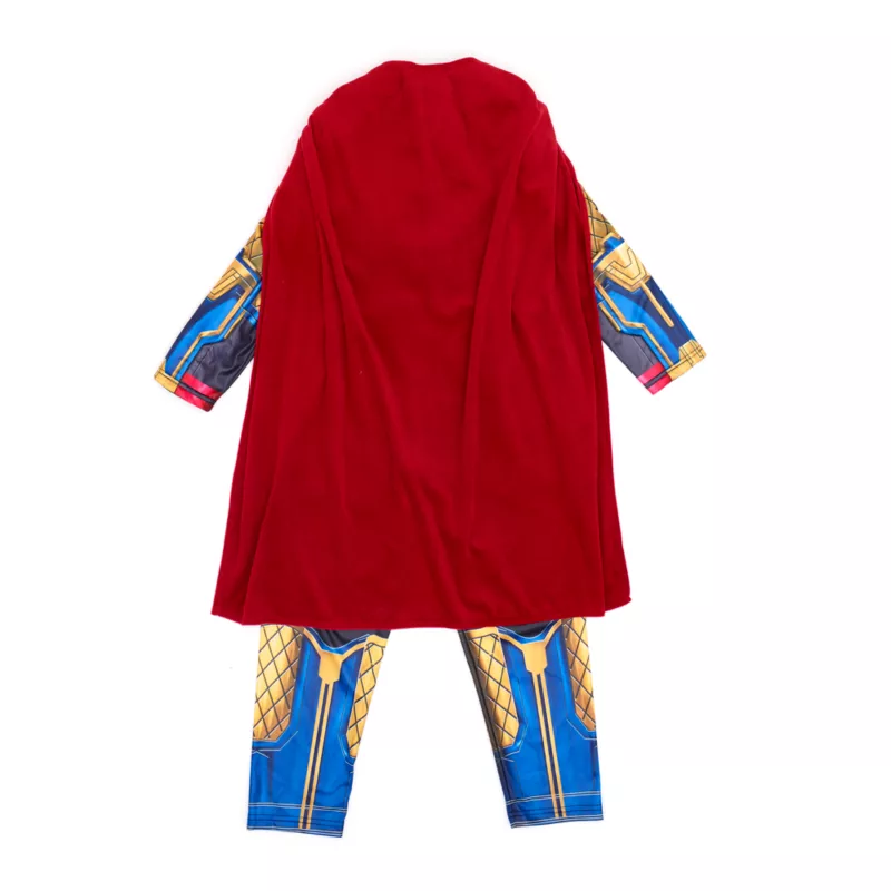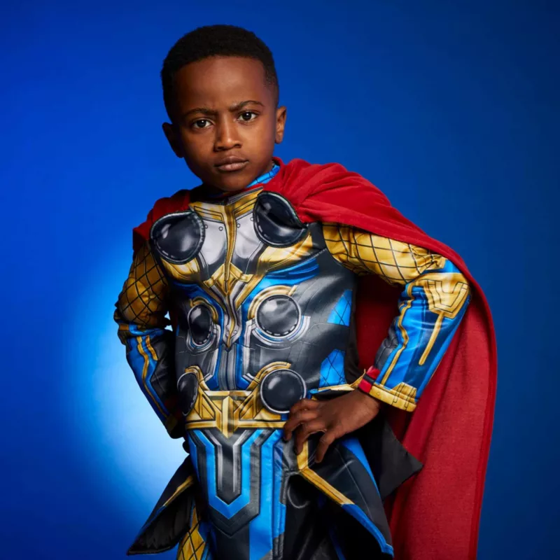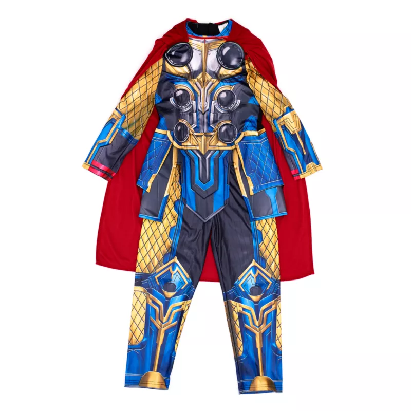 Assume the role of the Asgardian God of Thunder when wearing this Thor costume. Inspired by his appearance in Marvel Studios’ Thor: Love and Thunder, this detailed outfit includes top, attached cape, and leggings, while his dramatic winged mask completes the heroic look.