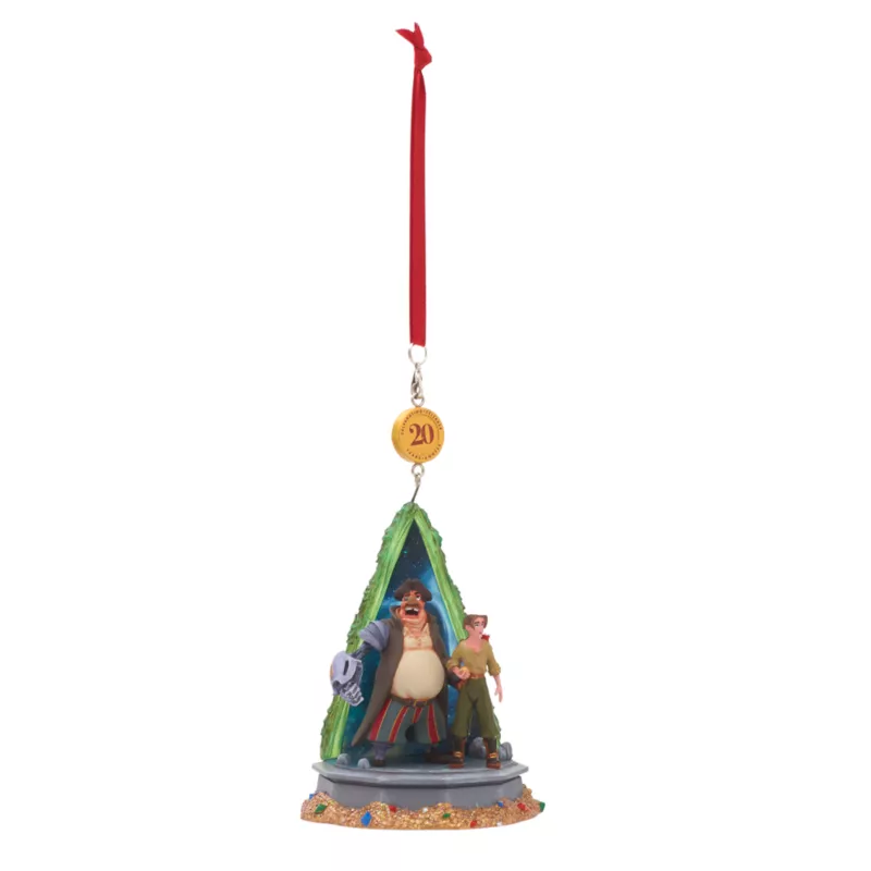 Treasure be buried in your holiday tree when hanging this Legacy Ornament commemorating the 20th Anniversary of Treasure Planet. Long John Silver and Jim Hawkins will feel right at home amongst your glittering, golden goodies.